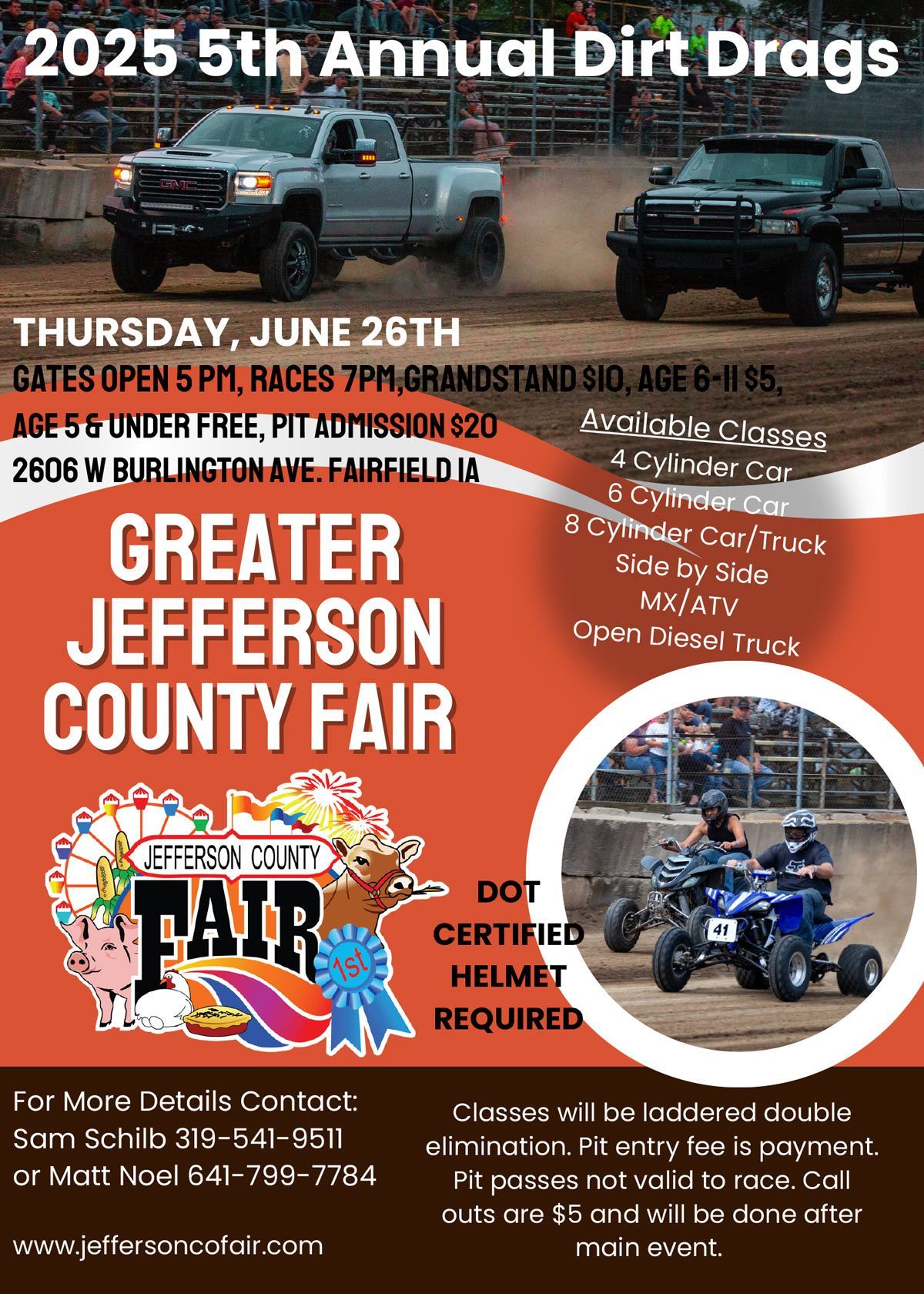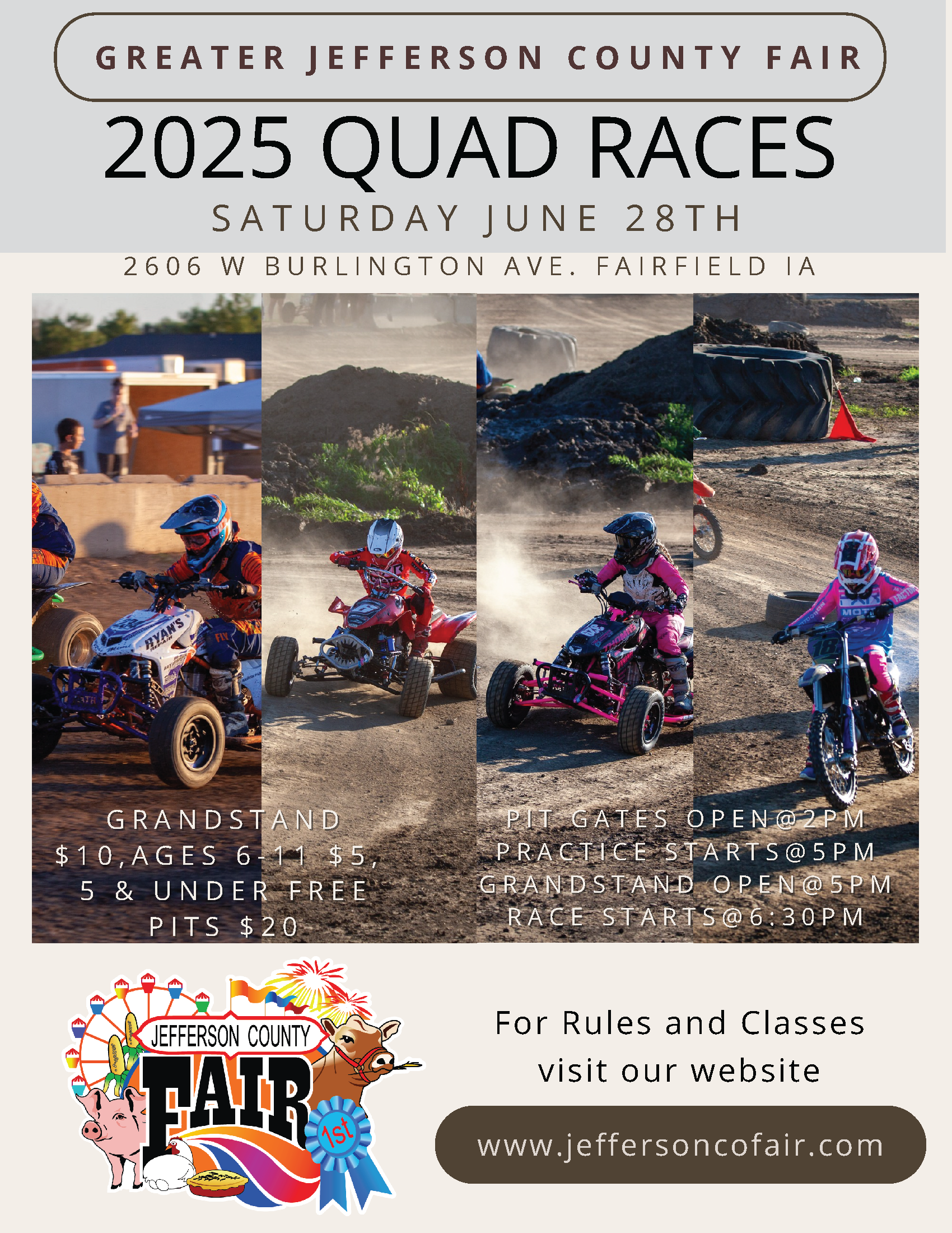 - The Jefferson County Fair is not responsible for any injuries or medical bills as a result of being a contestant in this race.
