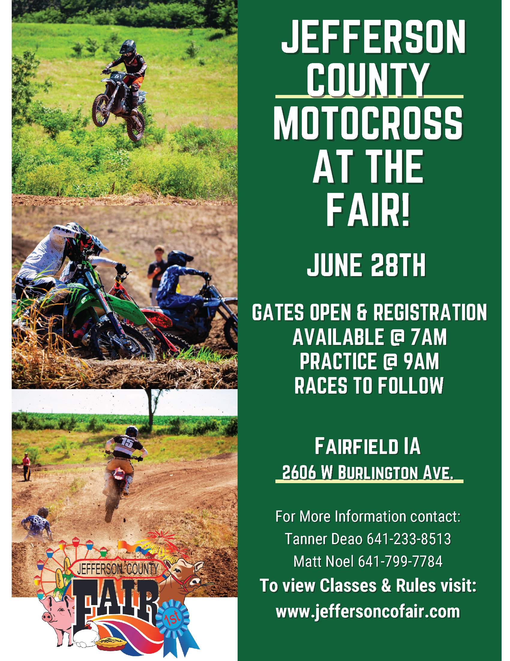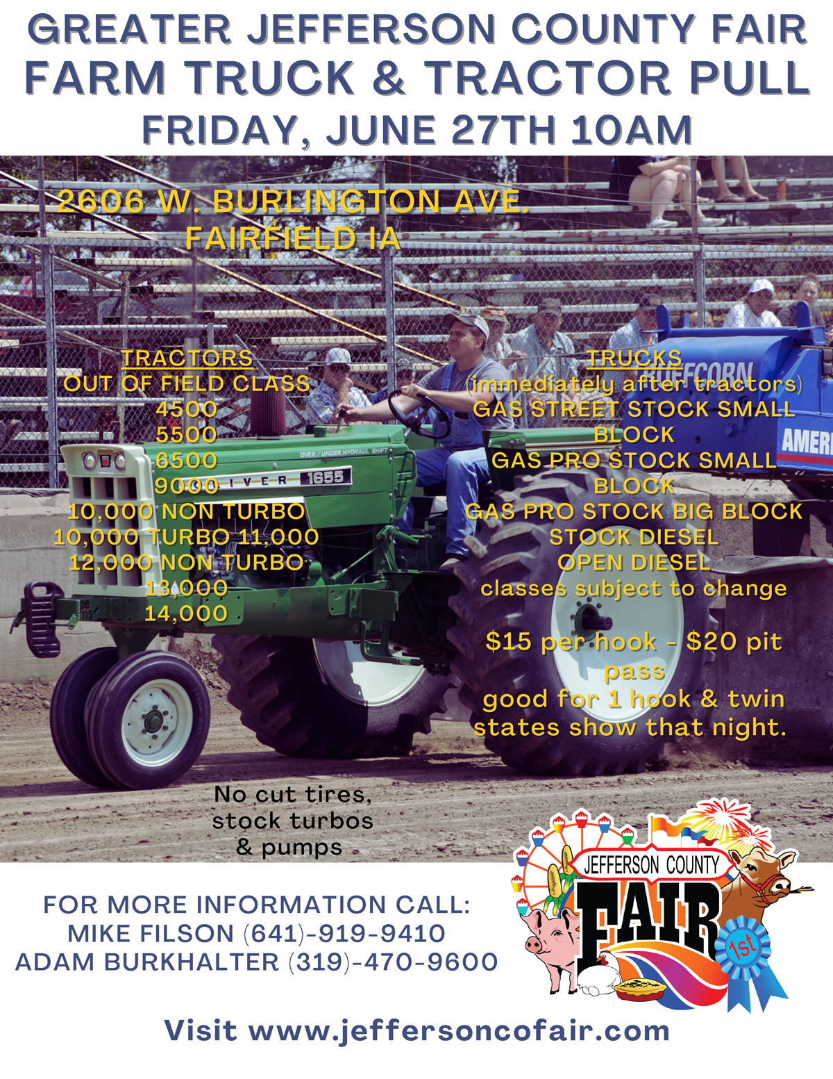 THE JEFFERSON COUNTY FAIR WILL NOT BE RESPONSIBLE FOR ANY ACCIDENT, DAMAGE OR LOSS.