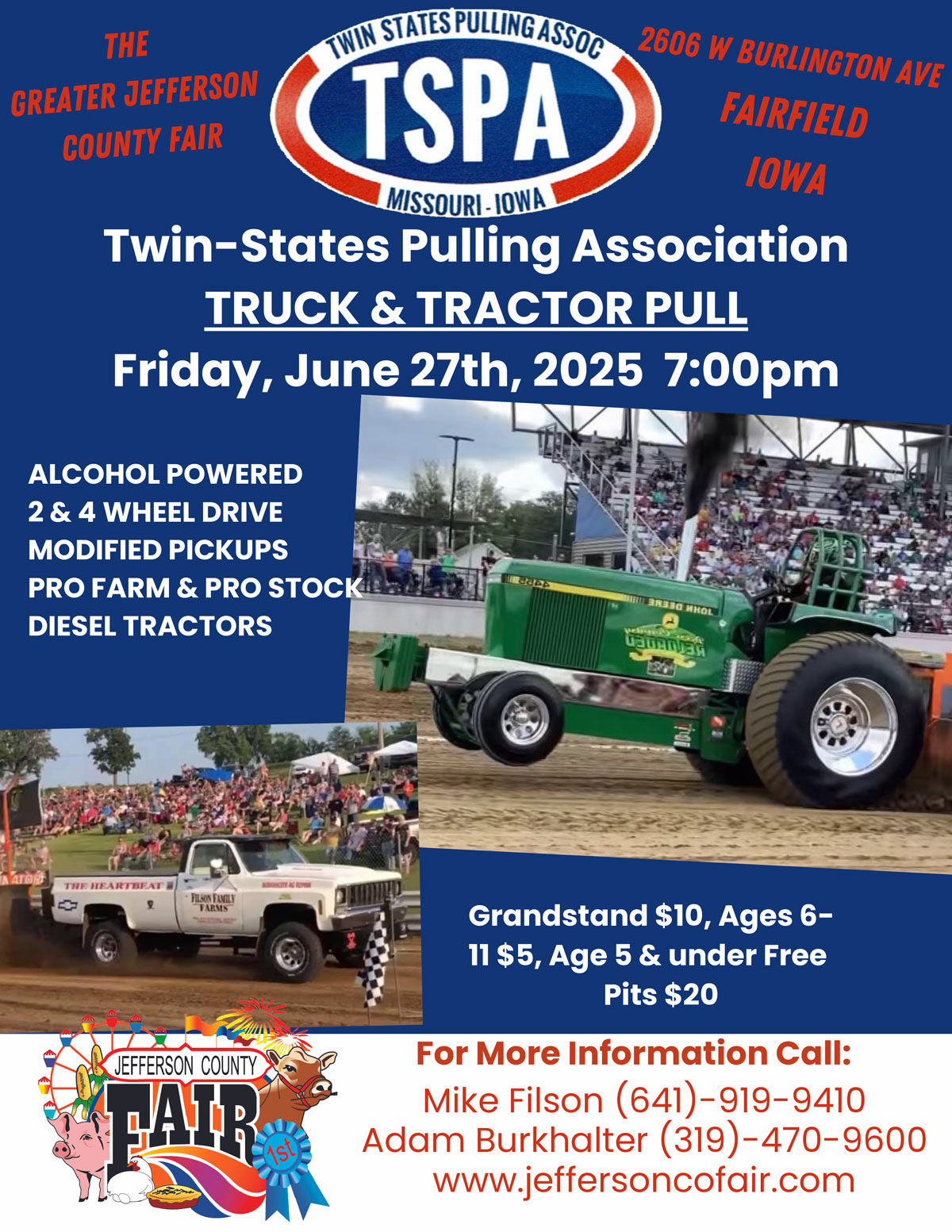 Grandstand $10, Ages 6-11 $5, Under 5 Free